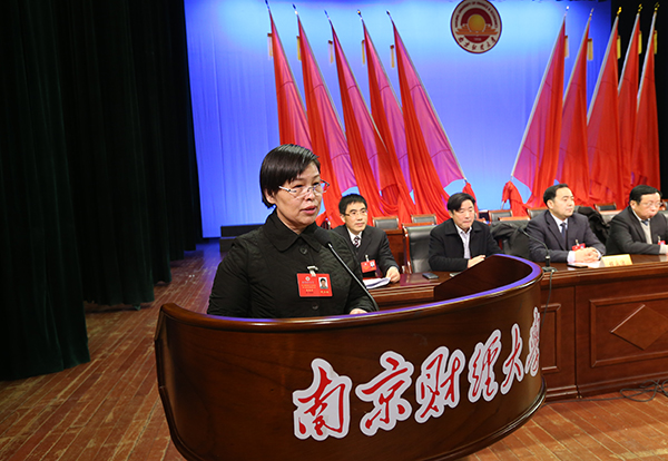 校党委常委、党委组织部部长、第三届“两代会”筹备工作领导小组成员、组织组组长朱琴华作《南京财经大学第三届教职工代表大会暨工会会员代表大会代表资格审查报告》。报告指出,全校28个选举单位认真贯彻执行民主集中制原则,发扬民主,广泛听取意见,充分酝酿讨论,在全校1515名教职工中,选举产生出186名代表,选举工作符合规定程序,代表资格有效。