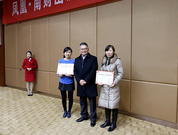 佘江涛副总经理为原小能、董玲两位同志颁发副总编辑聘书