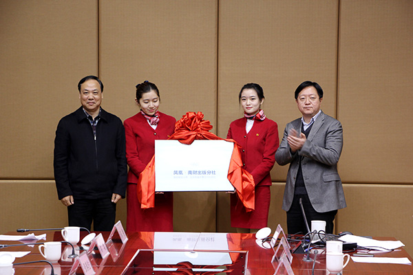 校党委书记陈章龙、凤凰出版传媒集团有限公司党委书记王译萱共同为凤凰•南财出版分社揭牌