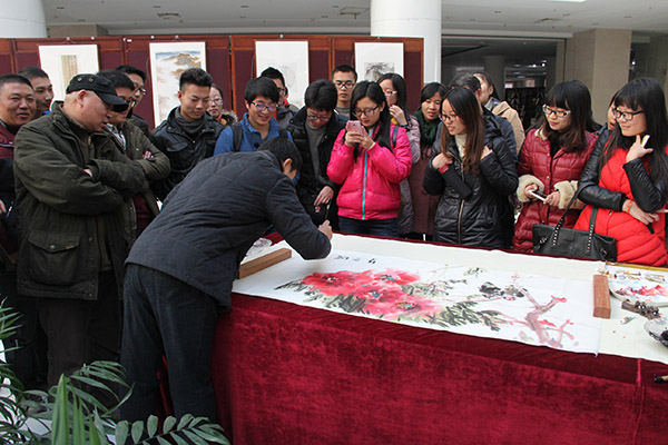 江苏省高等院校教职工书画摄影协会秘书长王卫平提出,大学艺展与校园文化互溶,浸染学术气息,提升了作品的文化品位,以艺术会友,增强了师生间的互动。