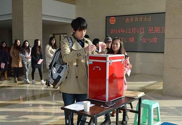 按照南京市栖霞区选举委员会的统一安排,12月5日,我校17000余名选民在仙林校区的12个投票点参加投票选举,为补选栖霞区第十七届人大代表投下神圣的一票。