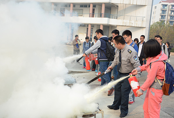师生们学习灭火器材的正确使用方法 校摄协 新闻13级 陆晓恺/摄