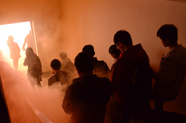 警报响起。同学们迅速从防火通道撤离。只见他们一个个捂住口鼻,迅速而有序的撤离“火灾”现场。逃生疏散演习后,大家学习了有关灭火器材的正确使用方法,进行了现场演练,并观看了火场救人表演。