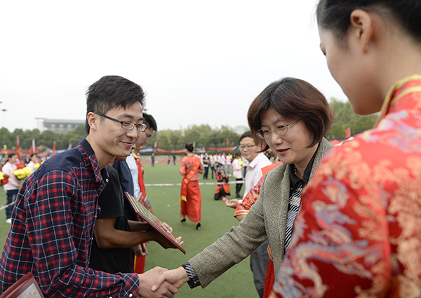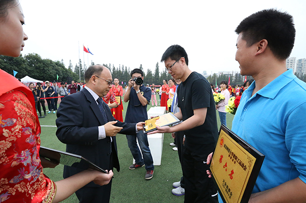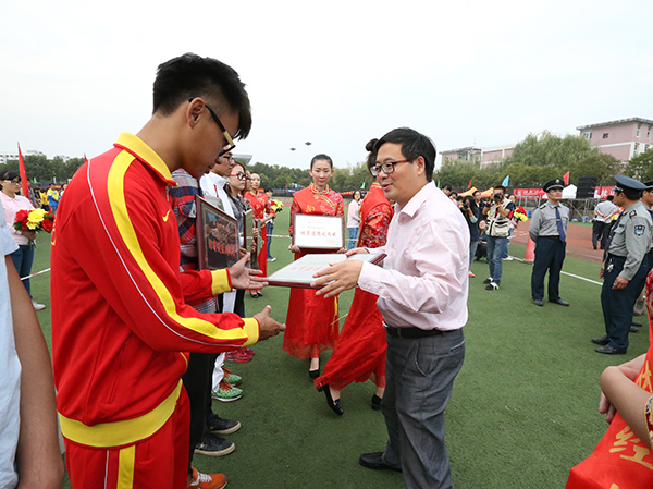 副校长华仁海为获得体育道德风尚奖的代表队颁奖 校摄协 佳木/摄
