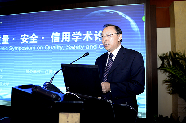 校党委书记陈章龙教授致开幕词。他首先对各位领导、嘉宾及代表的到来表示热烈欢迎,并指出了质量安全管理与诚信体系建设的重要性,希望论坛能够成为一个国内外学术界、企业界以及政府部门沟通交流和相互学习的平台,成为解决我国质量安全信用问题的智库。