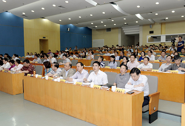 丁晓昌副厅长以翔实的数据全面介绍了我省当前高等教育发展状况,阐述了江苏高等教育进入新阶段:高校分类发展取得新进展、人才培养体制改革迈出新步伐、办学体制改革取得新成效、科技创新能力建设取得新突破、国际交流合作迈上新台阶、保障机制改革取得新进步。他强调,高等学校已经成为全省改革发展的人才库、科学技术的创新源、思想文化的集散地。