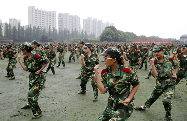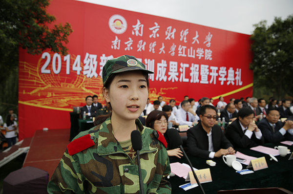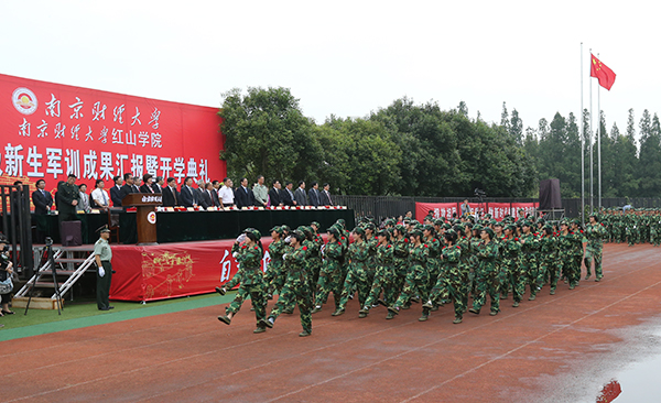 我校2014级新生军训成果汇报暨开学典礼在仙林校区体育场隆重举行 校摄协 会计11级 巢司宇/摄