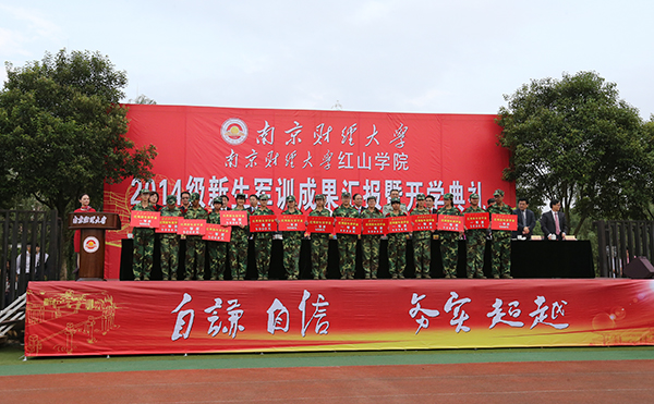 军训成果汇报表演结束后,邱伟芬副校长宣读了《关于表彰2014级新生军训“先进集体”和“先进个人”的决定》,我校60个军训先进集体、639名军训先进个人受到表彰,相关校领导为获奖集体和个人代表颁奖。