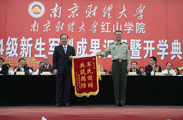 热血青年,意气风发;铿锵玫瑰,英姿飒爽。9月13日下午,我校2014级新生军训成果汇报暨开学典礼在仙林校区体育场隆重举行。全体校领导以及承担此次军训任务的解放军临汾旅教官出席大会,有关职能部门和学院主要负责人,我校5700余名2014级本科新生参加了军训成果汇报大会暨开学典礼。