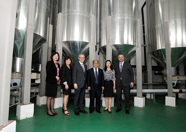 在王开田、邱伟芬副校长的陪同下,艾德·法斯特部长一行参观了我校食品科学与工程学院的数据采集室和实验室,食品科学与工程学院副院长刘琴向客人介绍了我校粮食科学与工程相关学科的发展历程、研究成果及国际合作情况。