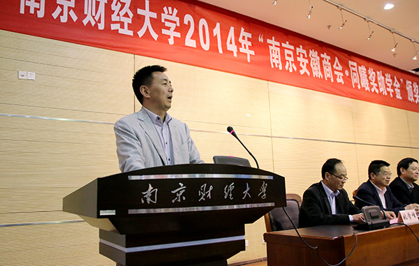 俞安平副校长宣读了《关于公布2014年“南京安徽商会•同曦奖助学金”评选结果的通知》,并鼓励同学们再接再厉,以优异的成绩回报社会、奉献社会。