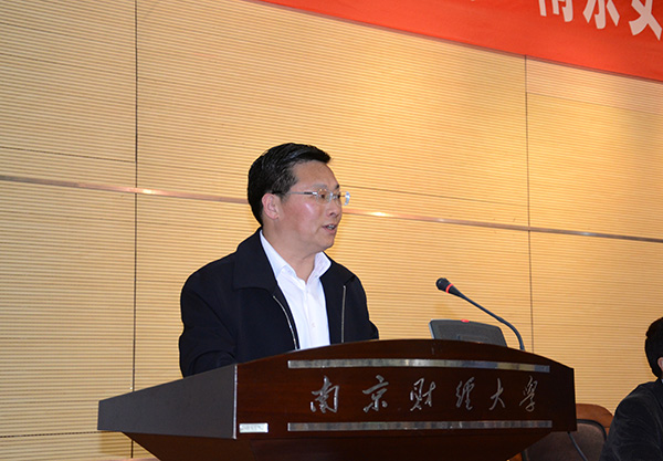 校党委副书记、副校长王建明讲话。他代表学校对南京安徽商会、同曦集团在我校设立奖学金,以及社会各界给予我校教育事业发展的关心和支持表示感谢。王建明副书记介绍了我校的基本情况及安徽籍在校学生的情况。他高度赞扬了徽商“贾而好儒,亦贾亦儒”的儒商精神,并对徽商积极投身于教育及社会慈善事业给予肯定。王建明副书记希望此次助学的合作是校企合作的开端,我校将利用自身的教育资源优势,探索开展更高层次的合作与交流,开创校企合作共赢的新局面。同时,他鼓励受资助的学生再接再厉,秉承南财校训精神,在今后的学习生活中,做到“既自谦、又自信,先务实、再超越”,传承徽商“吃苦耐劳、开拓创新、诚实守信”的人文精神。