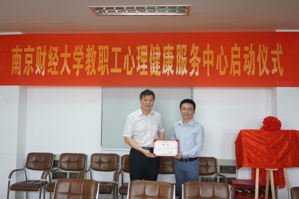 最后温潘亚副书记和裴涛副教授为中心揭牌,并向受聘为教职工心理健康服务中心的老师颁发聘书。