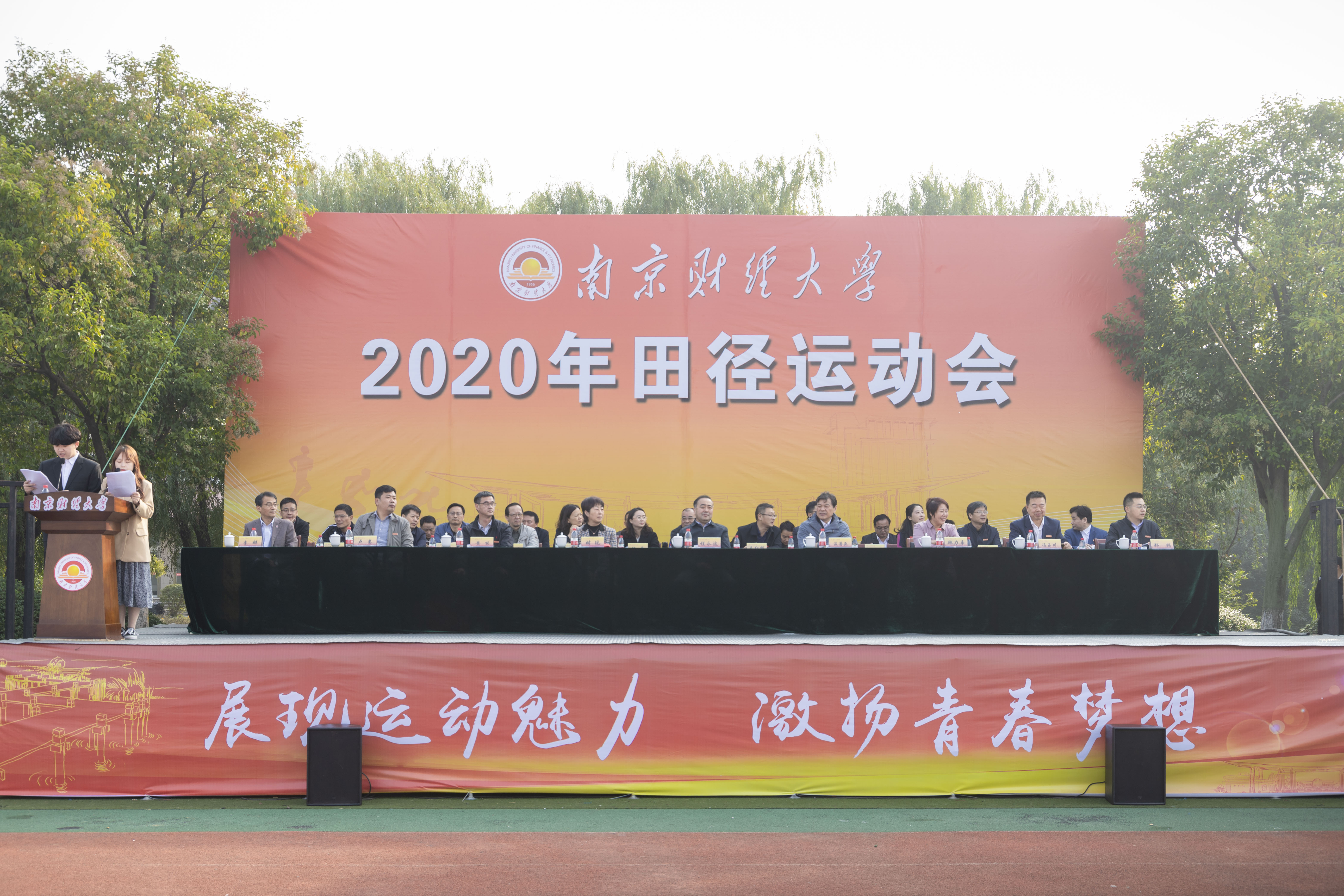 一年一度秋风劲,不是春光,胜似春光。10月22日上午,我校2020年田径运动会在仙林校区西苑田径场开幕。校长程永波,校党委副书记(正校级)温潘亚,党委常委、副校长时现、李群出席开幕式,各职能部门主要负责人、各学院党政负责人、全体运动员、全体裁判员参加开幕式。开幕式由李群副校长主持。