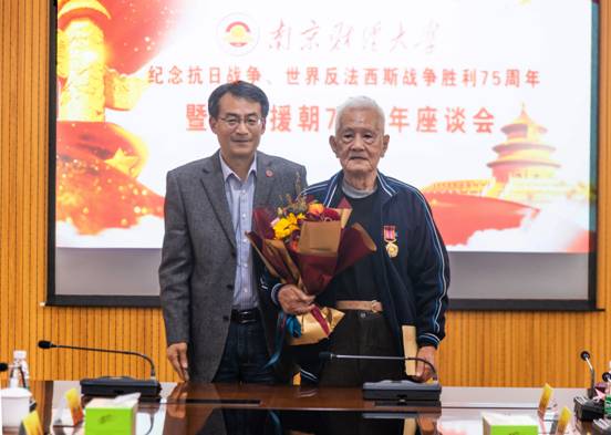 座谈会上,抗美援朝老战士代表俞寿颐、退役军人代表刘树铭以自己的战场经历,声情并茂地回顾了抗美援朝、抗美援越的峥嵘岁月,并发出“当国家需要时,虽然拿不动枪杆子,但我仍然会用笔杆子同敌人去战斗”的坚强心声,彰显了“退而不休,老而不朽”的精神气概。学生代表范亚琴表达了对先烈们的缅怀之情、对各位老战士的崇高敬意、对座谈会的深刻理解和争当新时代南财追梦人的决心。