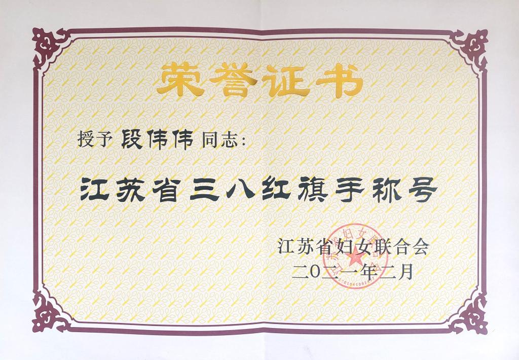 近日,江苏省妇女联合会印发《关于表彰2020年度江苏省三八红旗手标兵、三八红旗手(集体)的决定》(苏妇[2021]1号), 我校艺术教育中心主任段伟伟同志被评为“江苏省三八红旗手”称号。