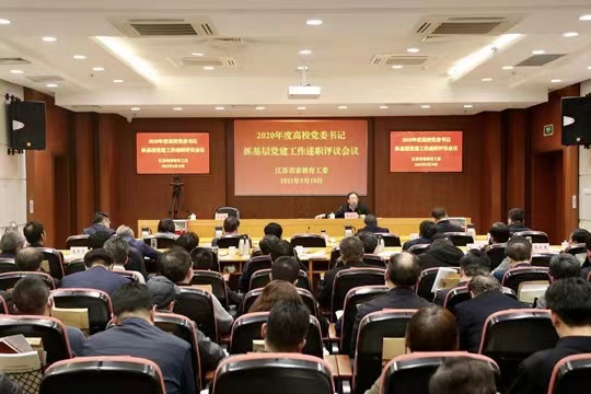 3月19日,省委教育工委在南京召开党组织关系隶属的41所高校党委书记抓基层党建工作述职评议会议,省委教育工委书记、省教育厅厅长葛道凯主持会议并讲话,省委教育工委副书记苏春海、徐子敏出席会议。东南大学等14所高校党委书记进行了现场述职,其他高校提交了书面述职材料,葛道凯书记代表省委教育工委进行了逐一点评,肯定成绩的同时指出问题,并提出工作要求。校党委书记张利民在会上作了题为“发挥党建引领作用,推进特色鲜明高水平财经大学建设”的现场述职发言。