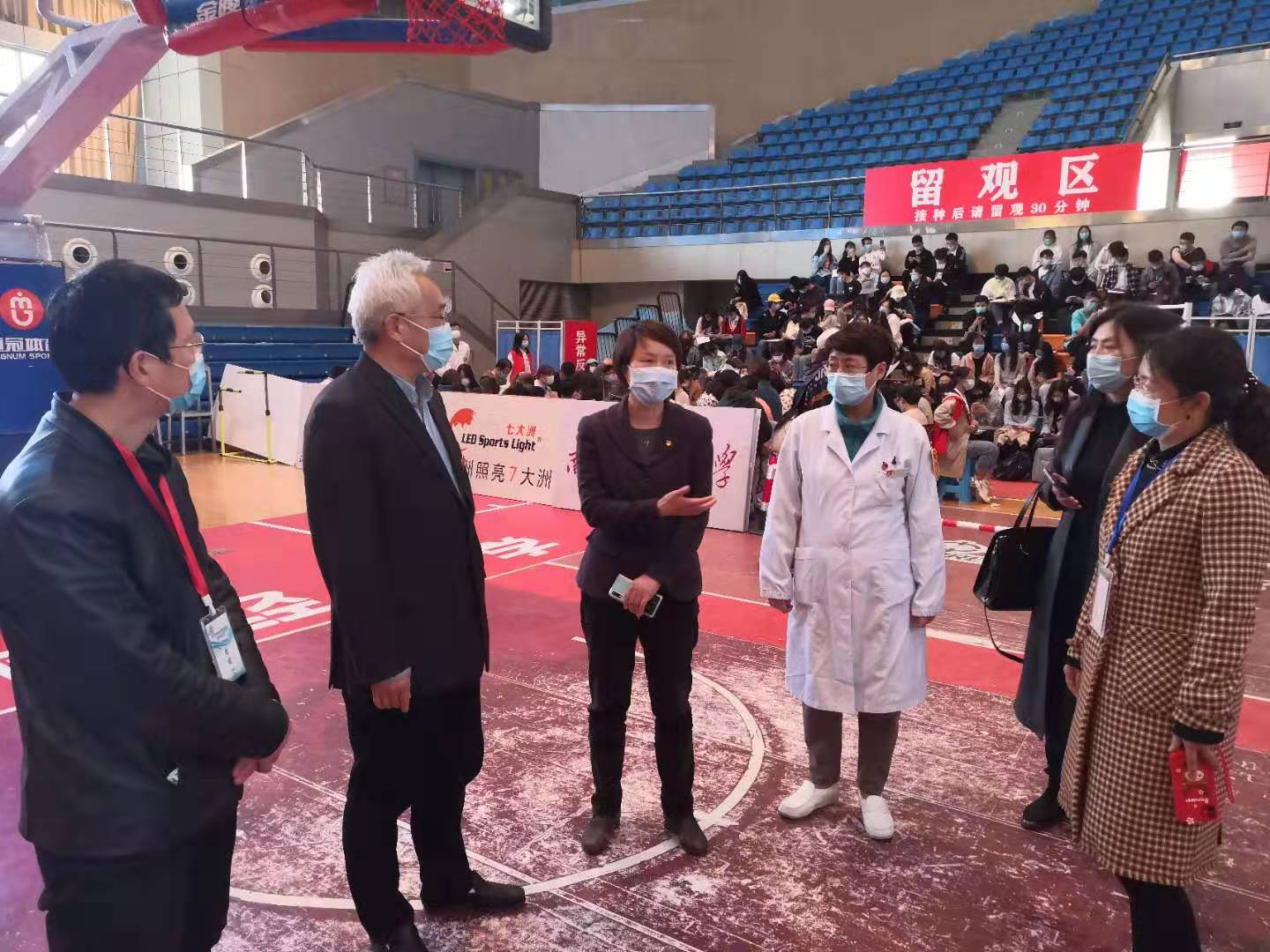 为响应省委、省卫健委号召,4月13日,我校首批师生新冠肺炎疫苗接种工作在仙林校区体育馆正式启动。栖霞区副区长卢静,校疫情防控领导小组组长、副校长李群、张为付到现场指导疫苗接种工作。