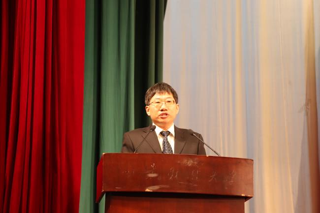 桥头校区管委会主任、红山学院党委书记鞠明富讲授“毕业党课”