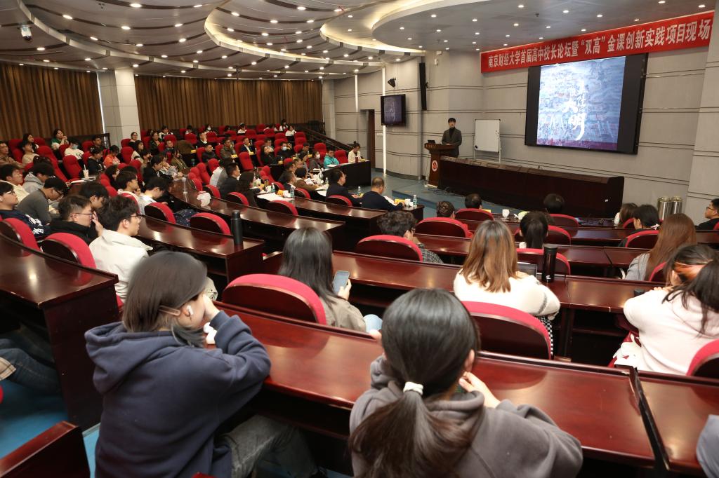 12月8日下午,我校在仙林校区行政楼二楼报告厅举办首届高中校长论坛暨“双高”金课创新实践项目现场评审会,党委常委、副校长赵国栋出席会议。江苏省教育考试院科研处处长贾同红、南京金陵中学河西分校校长穆耕森、南京市第十三中学党总支书记陈锋、南京市燕子矶中学党委书记石骏、江苏省常熟中学党委书记龚胜强、南京师范大学附属中学秦淮科技高中副校长龚亮亮、江苏省扬中高级中学副校长张祥、南京中医药大学招生办公室主任孟亚平、南京林业大学教学评估办公室副主任、高等教育研究所副所长李鸣明应邀担任评委。12位“双高”金课立项负责人进行了现场答辩。会议由学生处副处长全真真主持。