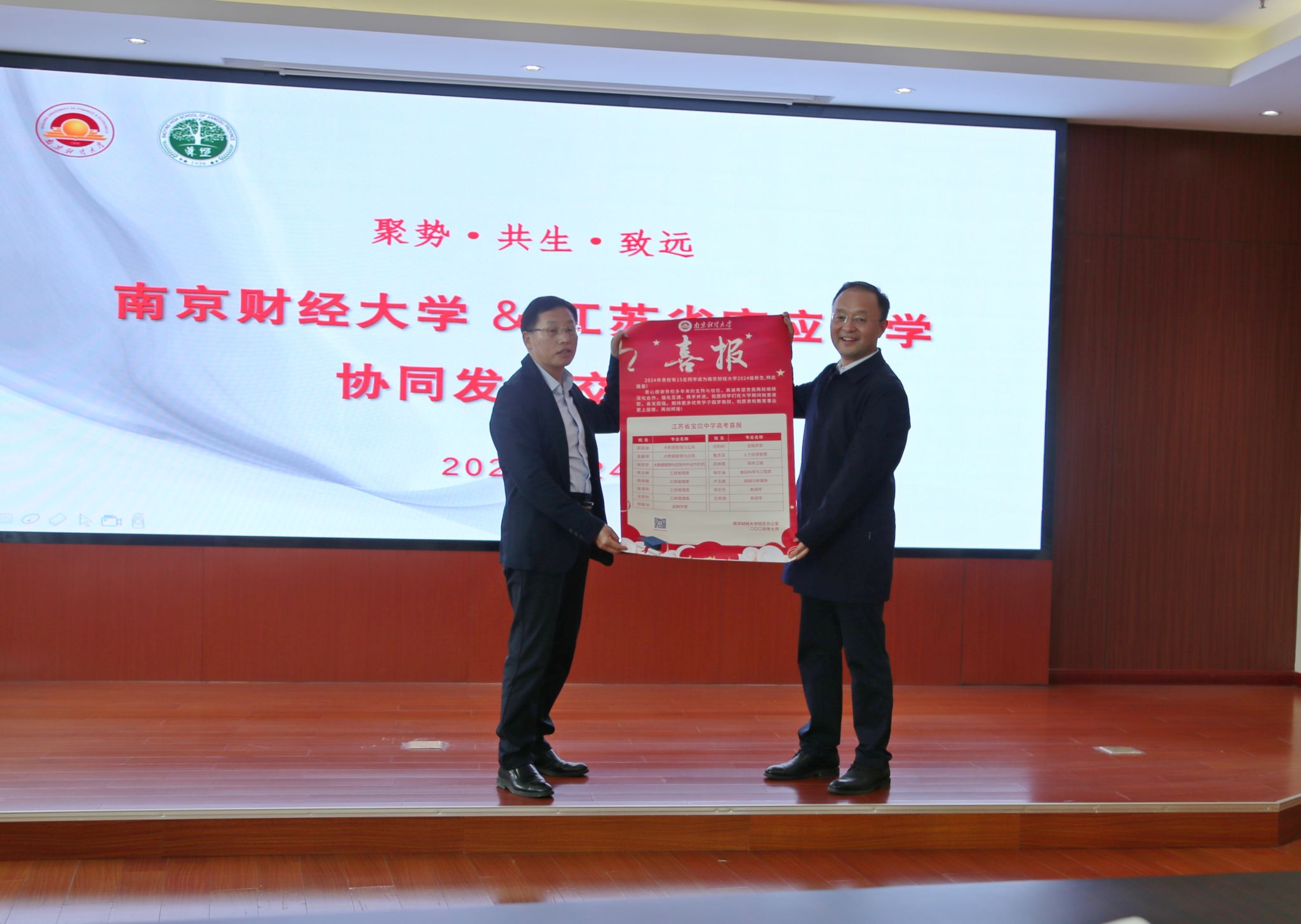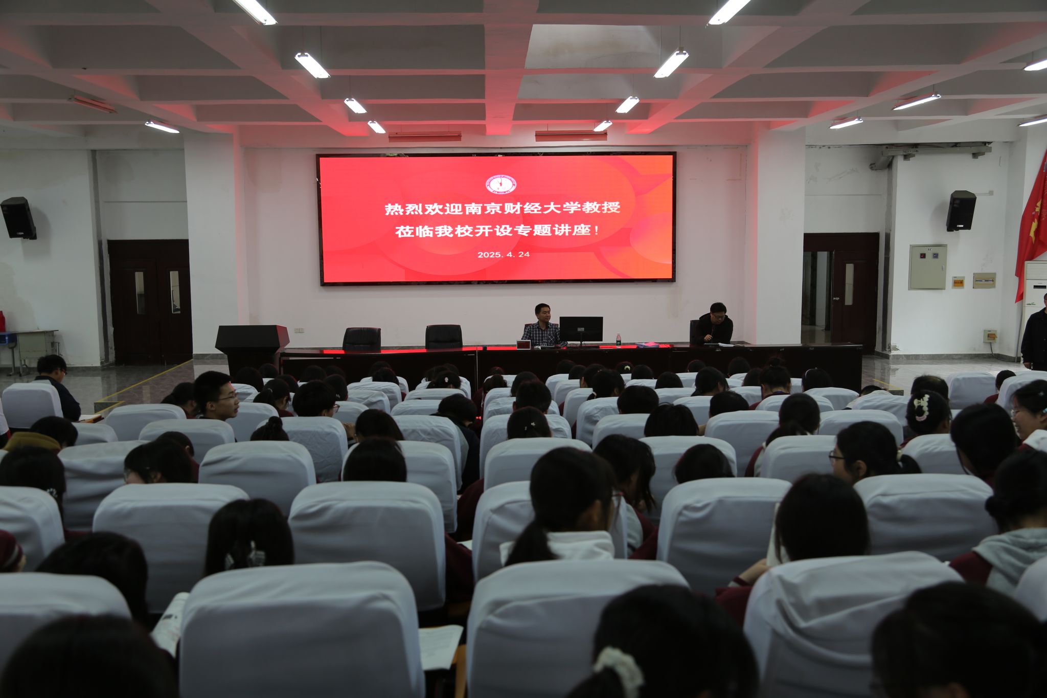 在宝应中学,该校党委书记、校长张广银对黄步龙副校长一行表示热烈欢迎,并介绍了近年来学校高质量发展建设成效及育人成果。黄步龙副校长对宝应中学长期以来为我校输送优质生源表示感谢。他表示,我校将深入挖掘各学科专业的新内涵,细化合作举措,创新方式方法,提升招生宣传推介工作的成效,并进一步强化与宝应中学在招生工作中的过程性合作,促成优质生源培育工作的前置。孙菲书记介绍了金融学院最新发展动态,并介绍了学院招生政策、转专业政策及2025年度新增招生专业等。双方就如何进一步加强“双高”衔接、如何提升经济类专业辨识度等进行了深入探讨。姚定俊副院长为高一学生作了“人民币原来是艺术品”主题讲座。
