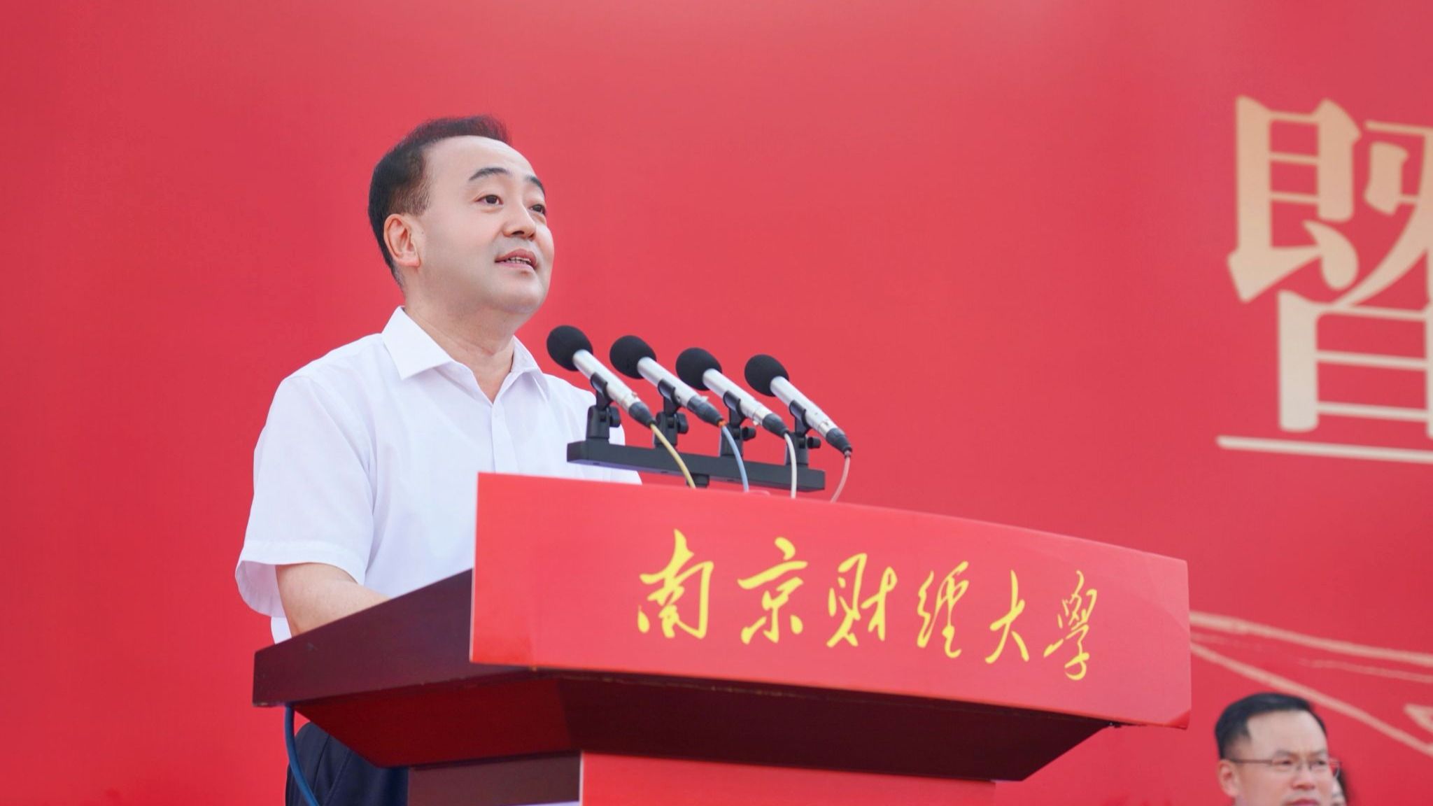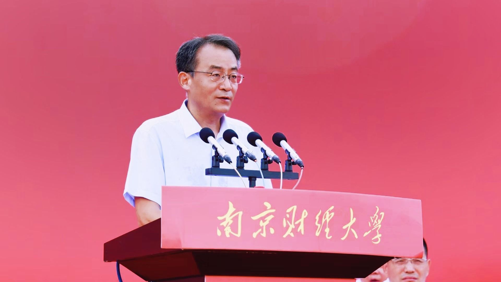 开学典礼上,程永波校长以《在南财 逐星海 见未来》为题致辞。他代表学校,向全体新同学的到来表示最热烈的欢迎和最诚挚的祝贺,向帮助同学们成长成才的家人、师长致以最衷心的感谢。他指出,作为一所坚守“为党育人、为国育才”初心的大学,南财大在近七十载发展历程中,始终以党和国家事业发展需要为前行方向,秉持“财经底色、粮食特色”办学传统,传承“粮安天下、经世济民”家国情怀,奋力谱写出新时代高水平财经大学建设新篇章。