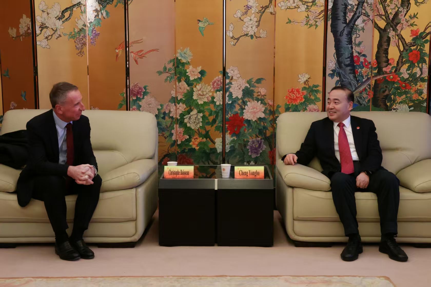 11月17日下午,法国高等对外贸易学院校长Christophe Boisseau,ESCE孔子学院院长和中法项目主任李建乐一行来访我校。校长程永波,党委常委、副校长方勇会见了法国高等对外贸易学院客人,并就推进两校全方位、实质性深度合作进行了友好会谈。