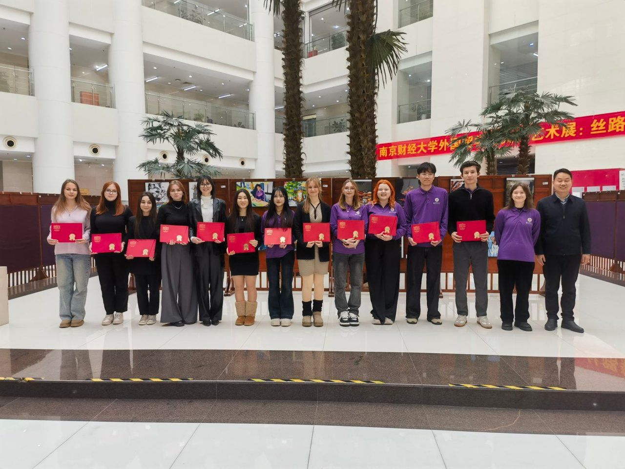 1月6日下午,我校“丝路新语·同心共绘——我与中国的故事”外国留学生文化艺术展在仙林校区图书馆二楼大厅开幕。党委常委、副校长方勇出席活动,党委宣传部、党委统战部、学生处、校团委、艺术教育中心、图书馆、国际教育学院等单位相关负责人以及外国留学生代表参加活动。
