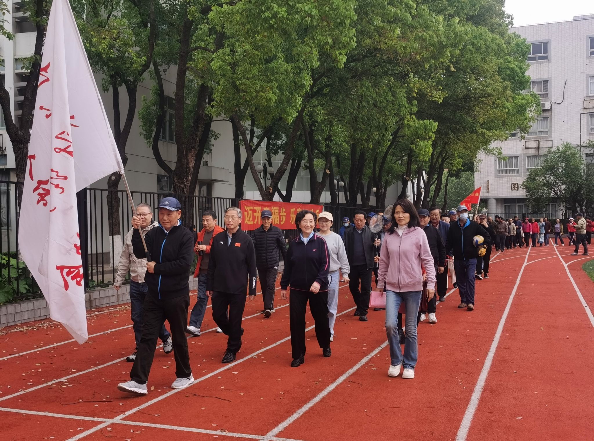 开幕式结束后,健步走活动正式拉开帷幕。随着一声令下,老同志们精神抖擞,迈着稳健从容的步伐,高喊“老有所为 快乐运动 夕阳正红 团结奋进”,沿着运动场预设路线有序行进。