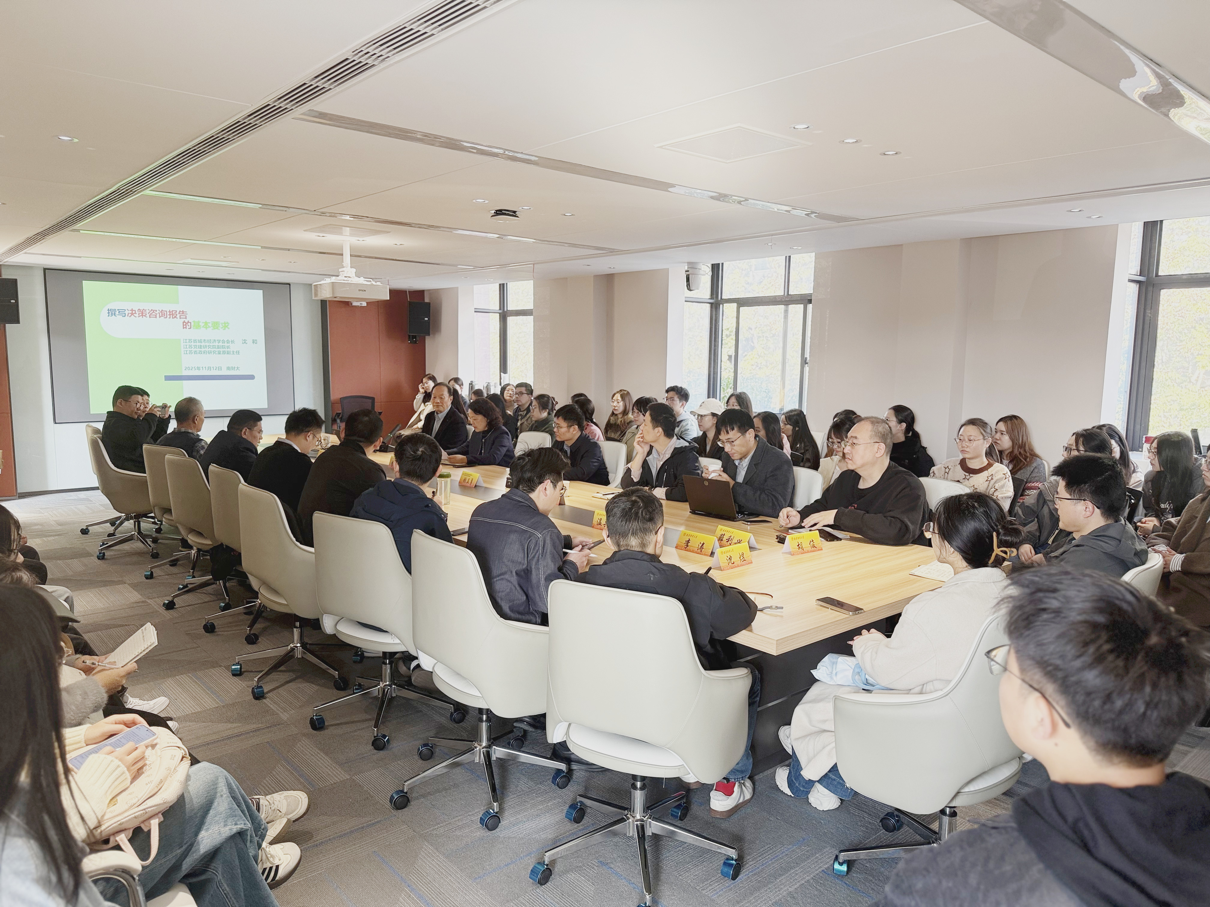 沈和会长根据我国新型智库建设的总体部署与具体要求,结合多年来参与政策研究的切身感受,系统阐述了撰写决策咨询报告对于服务治理现代化的重要作用。他围绕如何撰写决策咨询报告,重点讲解了五方面基本要求:把握基本特征,增强综合素养;紧贴中心工作,提升思想高度;聚焦决策需求,突出问题导向;深入调查研究,坚持求真务实;优化表达方式,做到短小精悍。他结合决策咨询报告的典型案例,深入剖析撰写高质量决策咨询报告的实战逻辑,为提升我校师生政策研究能力、深化对国家战略与地方实践衔接的理解、更好发挥党外知识分子和智库成员资政建言作用,起到了积极的推动作用,获得与会师生的一致好评。