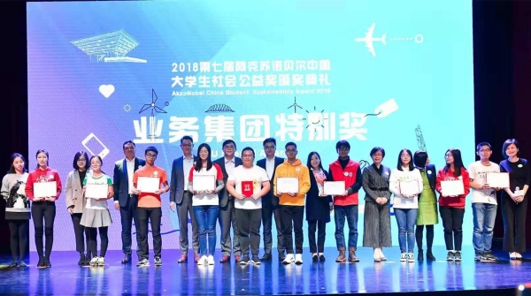 据悉,“阿克苏诺贝尔中国大学生社会公益奖”在共青团中央学校部的指导下,由阿克苏诺贝尔中国于2011年支持设立,作为团中央学校部“中国大学生社会实践知行促进计划”(简称“知行计划”)核心项目,是中国第一个以大学生社团为奖励对象的社会公益奖项,已连续开展八年。本届公益奖共设置金奖2项、特别奖10项。