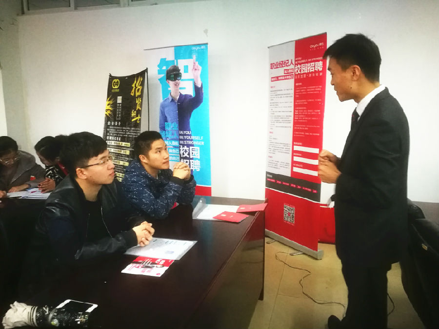 招聘会上,来自宁波银行、新华人寿保险股份有限公司、德祐地产、国联证券、译林教育管理咨询有限公司和金豆子财务管理有限公司的招聘专员就公司情况、公司文化、岗位职责、任职资格、未来发展和工资待遇等向在场学生进行宣讲。多名毕业生积极投递简历并与公司现场达成就业意向。