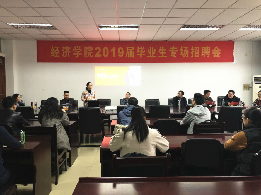 11月6日下午,经济学院在仙林校区德经楼307会议室举办2019届毕业生专场招聘会,经济学院党委副书记袁怡琨、学工秘书尹海燕、毕业班辅导员徐昊翔和各个学院的2019届毕业生参加了此次招聘会,并与用人单位进行交流。
