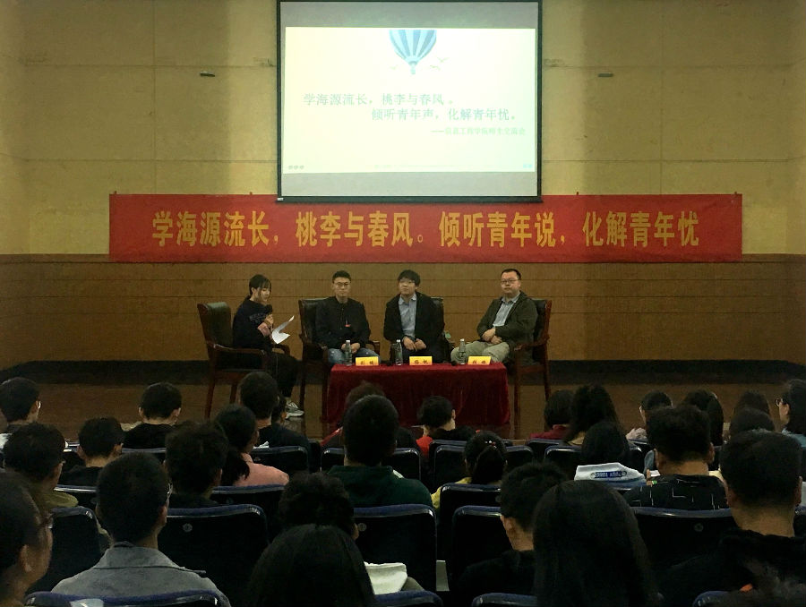 11月2日下午,信息工程学院青年之声“学海源流长,桃李与春风;倾听青年声,化解青年忧”师生交流会在仙林校区德济楼二楼报告厅举办。信息工程学院年轻骨干教师、2018级新生班主任张璐、杨帆和刘健三位老师参加活动,与该学院2018级新生们进行交流。