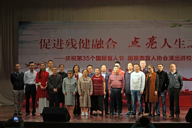 10月12日,南京市盲人协会应红山学院邀请在福建路校区大礼堂举行“促进残健融合,点亮人生之路”文艺汇演。南京市残联党组书记、理事长朱京芝,我校桥管会主任、红山学院党委书记鞠明富,党委副书记、副院长高永东,副院长王晓庆,与福建路校区师生一同观看了此次汇演。