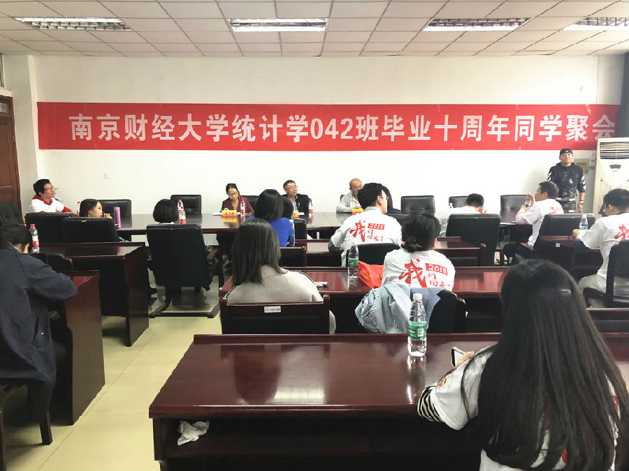 10月20日下午,来自全国各地的30余名统计学042班校友在我校仙林校区德经楼307会议室欢聚一堂,共叙同窗情谊。经济学院党委书记陈耀辉、党委副书记袁怡琨,统计系杨益民教授、辅导员尹海燕老师参加此次活动。