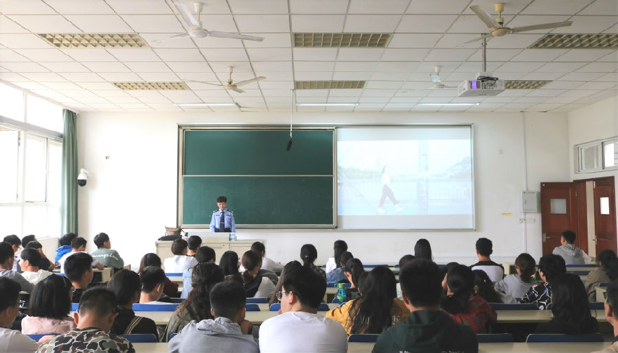 讲座伊始,陈警官向在场2018级新生们展示了由兰州市公安局创作的宣传片,以新潮的方式让大家了解现今的诸多诈骗手段。随后,陈警官从专业的角度向同学们阐述了警方处理诈骗案件的手段与流程。至今为止,南京市公安局刑侦局反诈中心已止付资金2.3亿元,返还受骗者1000万元人民币。