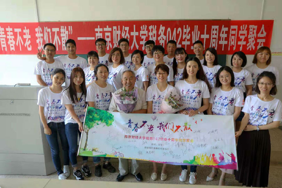 10月4日,财政与税务学院税务042班的部分同学伴着上课铃声来到仙林校区德业楼110教室,召开了一场毕业十周年班会。财税学院校友办主任、退休教授陆新葵,辅导员李玲参加班会。