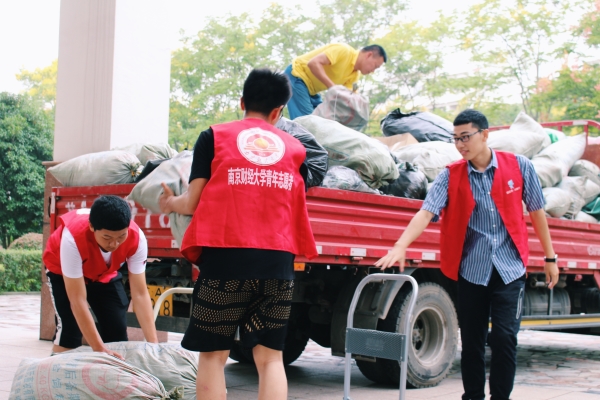 9月16日中午,南京财经大学青年志愿者协会向南京红十字会捐赠军训服装的活动在仙林校区大学生活动中心前广场举行。