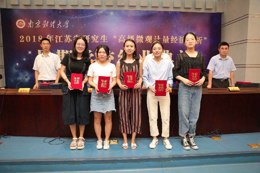 我校党委研究生工作部部长韩力争宣读了《关于表彰2018年江苏省研究生“高级微观计量经济分析”暑期学校优秀成果的决定》,经济学院党委书记陈耀辉宣读了《关于同意江苏省研究生“高级微观计量经济分析”暑期学校王馗等95名学员结业的决定》,随后主席台领导为受表彰学员和结业学员颁发了荣誉证书和结业证书。