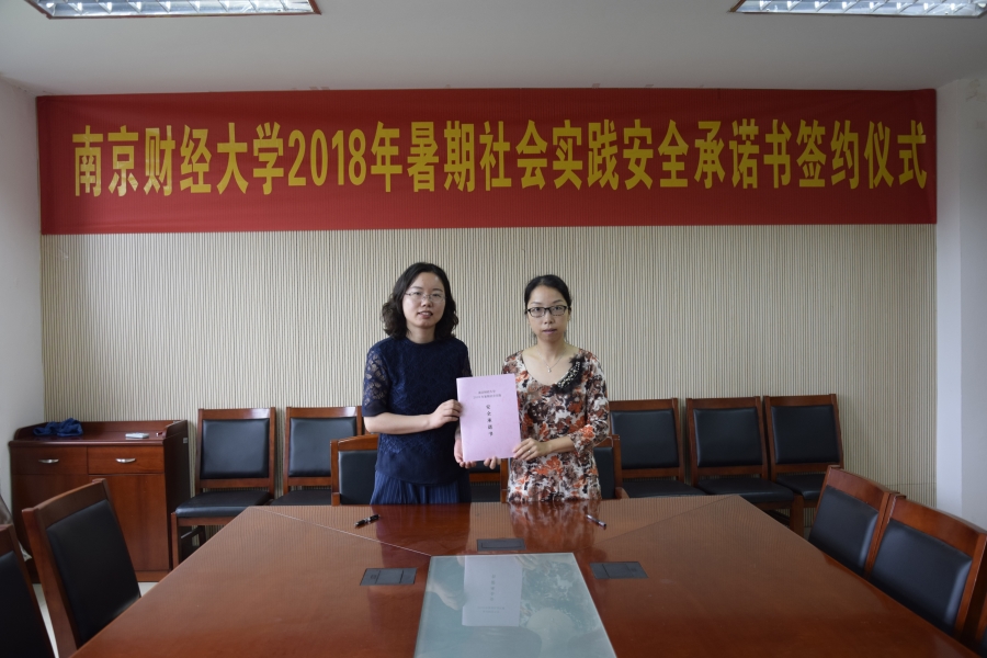 接着举行2018年暑期社会实践安全承诺书签约仪式。校团委副书记李娜、经济学院党委副书记袁怡琨签署安全承诺书。该承诺书主要就组织健全、制度保障、教育有效、措施落实、责任明确等五个方面作了规范,确保将我校2018年暑期社会实践安全有序进行、责任落实到位。