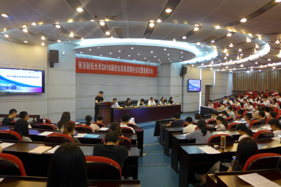 6月11日下午,南京财经大学2018届校友联络员聘任仪式暨培训大会在仙林校区行政楼二楼报告厅举行。我校党委研究生工作部部长韩力争,学生处副处长张小荣,金陵校友会副秘书长、会计学07级校友徐岱琳,对外联络处全体人员以及2018届校友联络员参加会议。会议由对外联络处陈涛主持。