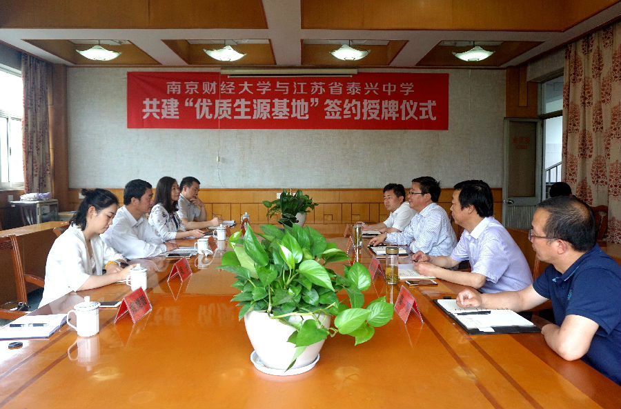 5月31日,我校在江苏省泰兴中学建立优质生源基地,并举行签约授牌仪式。泰兴市人大常委会副主任、泰兴中学校长王中先,泰兴中学党委副书记、副校长钱留华,党委副书记、纪委书记钱凯,校长助理栾军等相关领导,我校学生处副处长、招生办主任孙菲,信息工程学院党委书记韩忠愿、党委副书记吴丹、学工办主任张媛媛,学生处招生办副主任张亦佳等参加相关仪式。