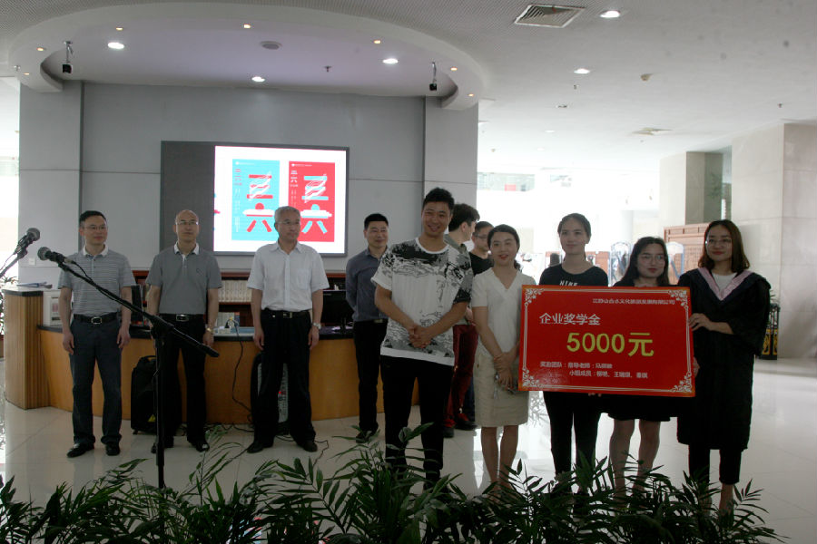 校企合作单位代表江苏山合水文化旅游发展有限公司总经理刘一峰先生为优秀毕业设计团队颁发“企业奖学金”。他说,毕业设计和企业项目的对接,是校企合作模式的新探索和新尝试,为行业发展和项目带来新的设计灵感,实现了校企合作人才培养的实质性共赢。
