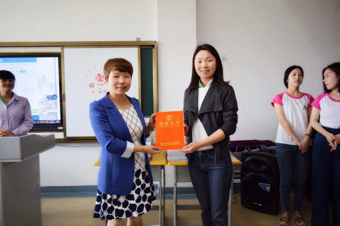 接着,王岚副书记代表学院将精心采购的儿童类绘本读物捐赠给福利院,并代表学院接受了福利院颁发的捐赠证书。