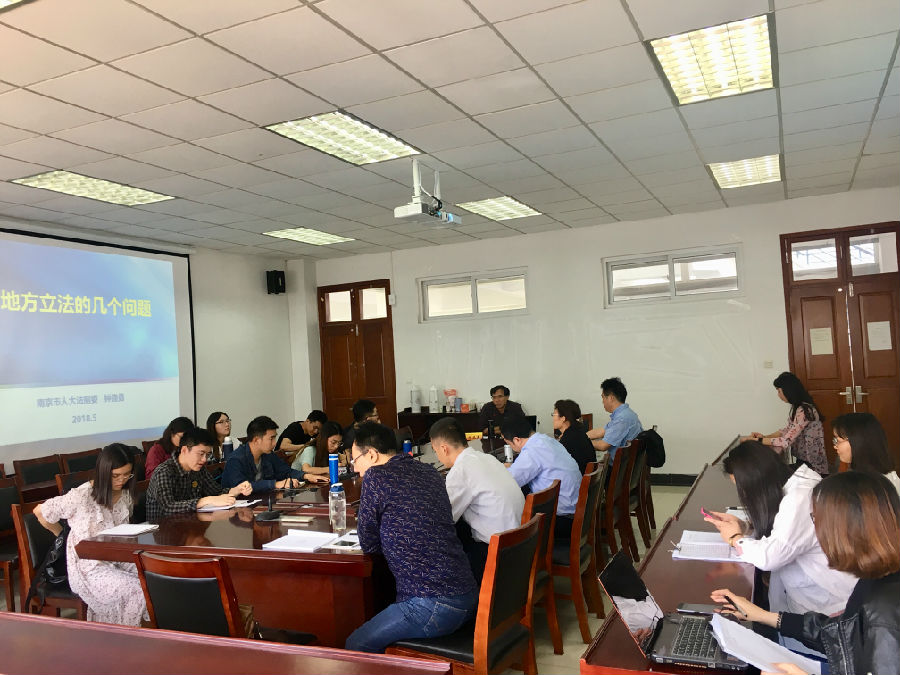 5月9日下午,应法学院邀请,南京市人大常委会法制委员会钟连勇副主任在仙林校区德正楼404会议室作了题为“地方立法的理论与实践”的精彩讲座。法学院部分教师和研究生到场聆听,讲座由胡宜奎副院长主持。