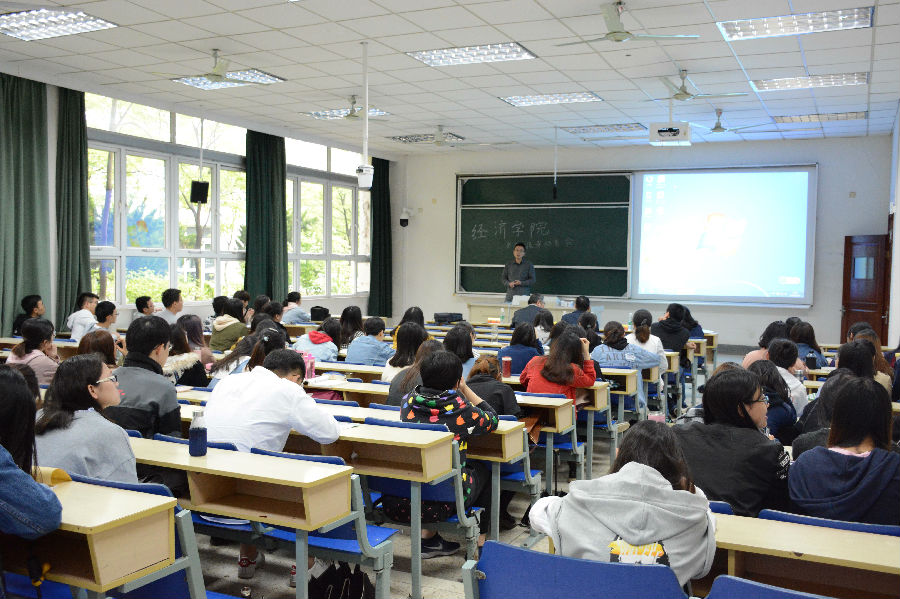 4月24日下午,经济学院在仙林校区德济楼103室召开考研动员大会,经济学院党委书记陈耀辉、统计系王庚教授、经济系陈杰博士、2015级辅导员徐昊翔参加活动,经济学院2015级全体同学参加动员会。
