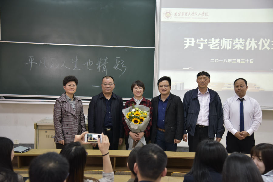 3月30日下午,尹宁老师荣休仪式在福建路校区教1楼102教室举行。桥管会主任、红山学院党委书记鞠明富,副院长王晓庆,各部门负责人、全体学生工作人员、近30名校友和近百名学生参加仪式。仪式由红山学院党委副书记、副院长高永东主持。