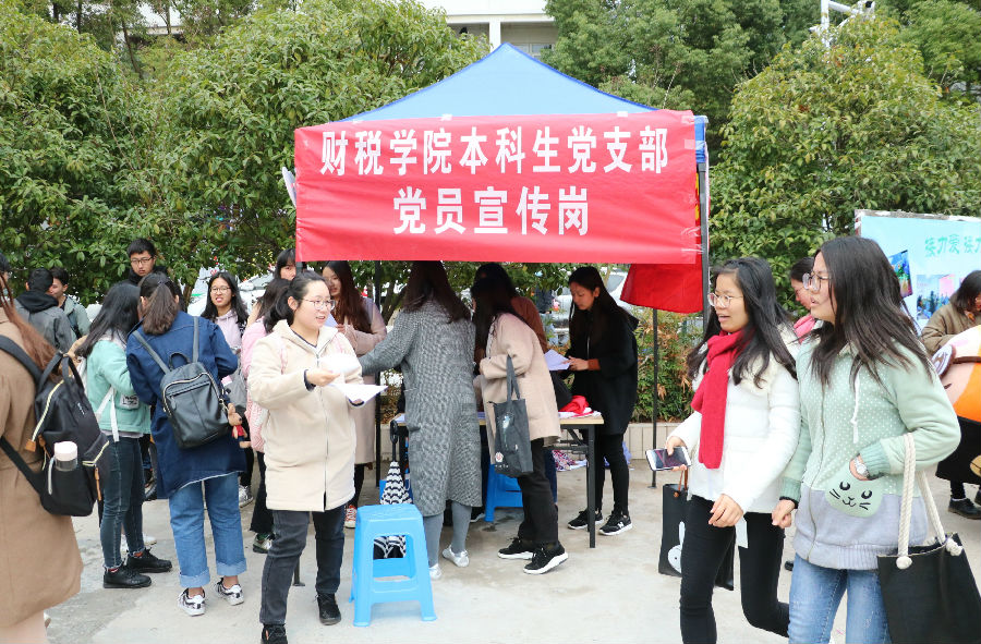 3月16日,财政与税务学院本科生党员在仙林校区中苑生活区设立“党员宣传岗”,面向全校学子宣传“爱心税”精准扶贫服务项目。