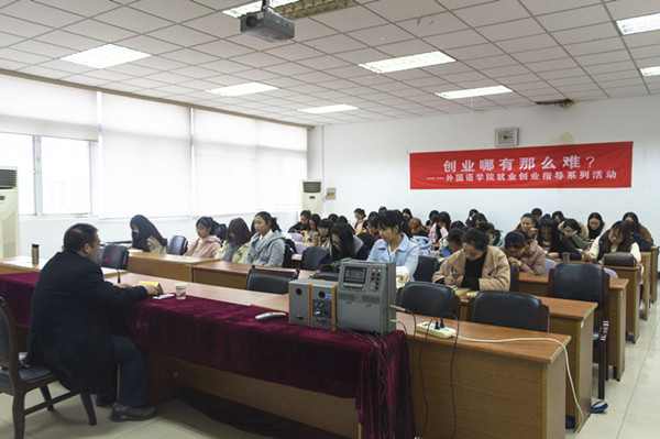 11月30日下午,江苏和谐动力集团有限公司党委书记、董事长,“感动南京”2016年度人物周仁权应邀为我校学子作了题为“创业哪有那么难?”的讲座,讲座在仙林校区德正楼308会议室举行。讲座由外国语学院党委书记刘浩主持,外语学院部分学生聆听讲座。